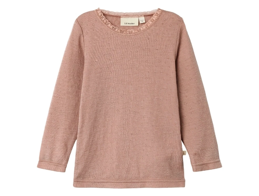 Lil' Atelier bluse roebuck i merinould med blonde