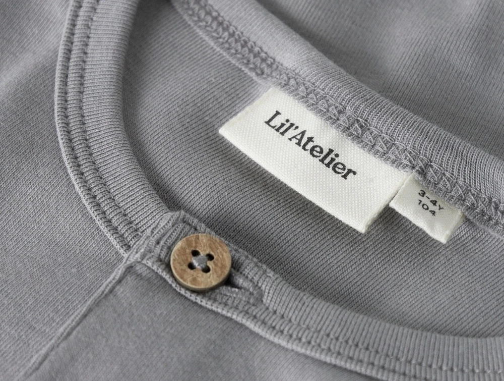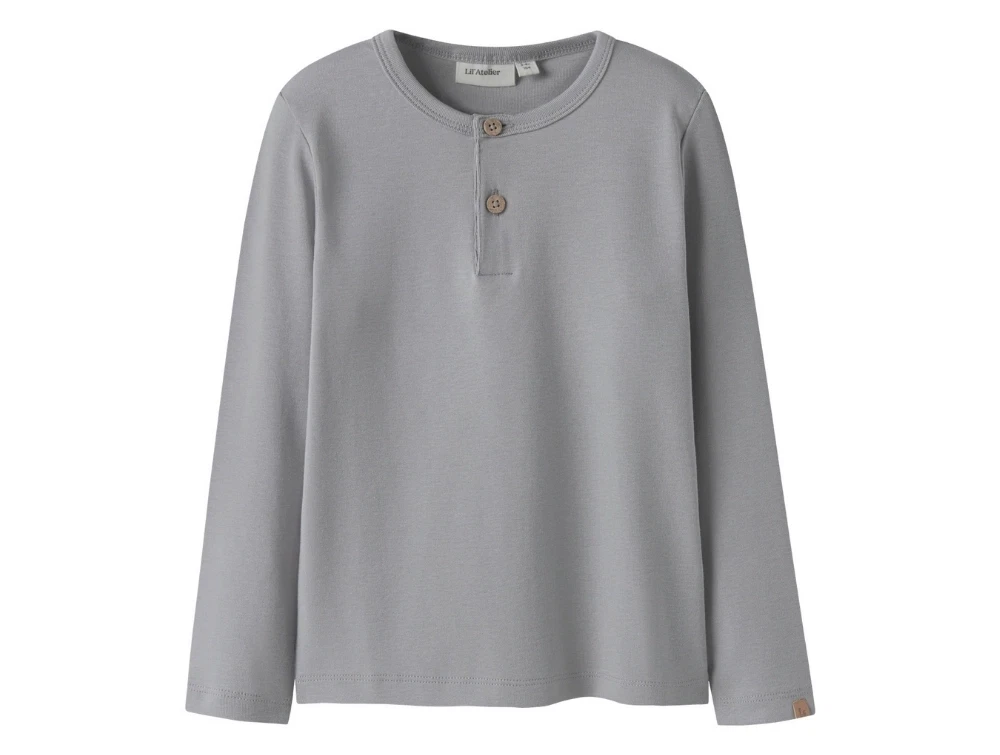 Bluse i grå nuance fra Lil' Atelier med to knapper foran. Modellen har rund hals med grandad-lukning og er fremstillet i en blød jerseykvalitet med let stræk, som gør den behagelig for barnet at have på. En enkel og tidløs style, perfekt til hverdagsbrug.