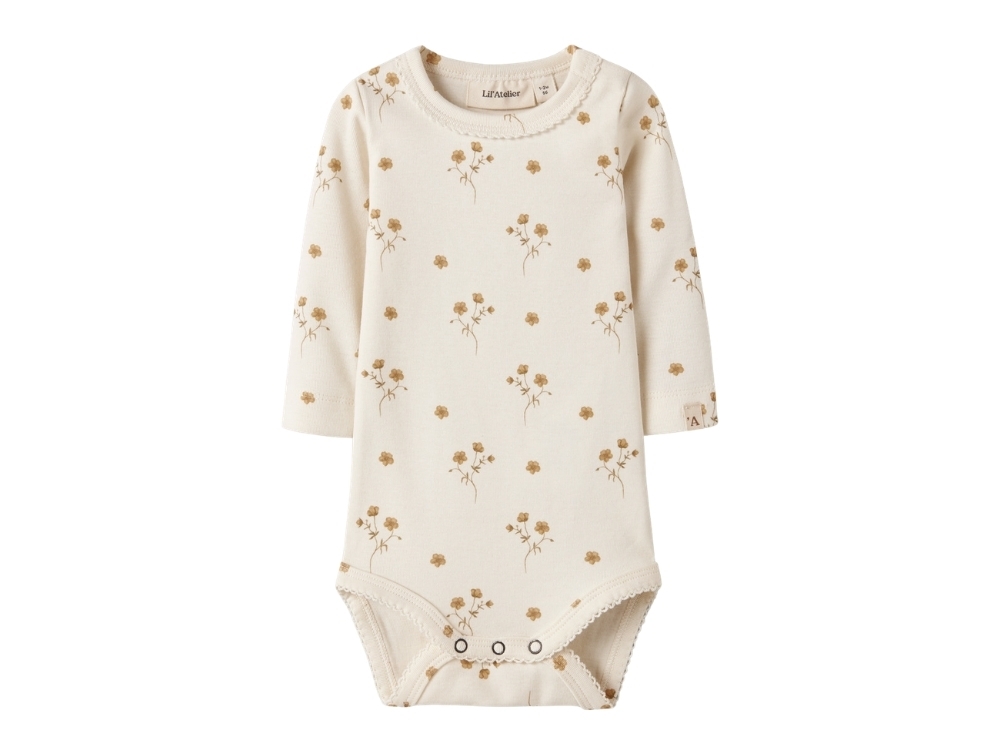 Body i råhvid nuance (coconut milk) fra Lil' Atelier med små blomsterprint i varme gyldne toner.