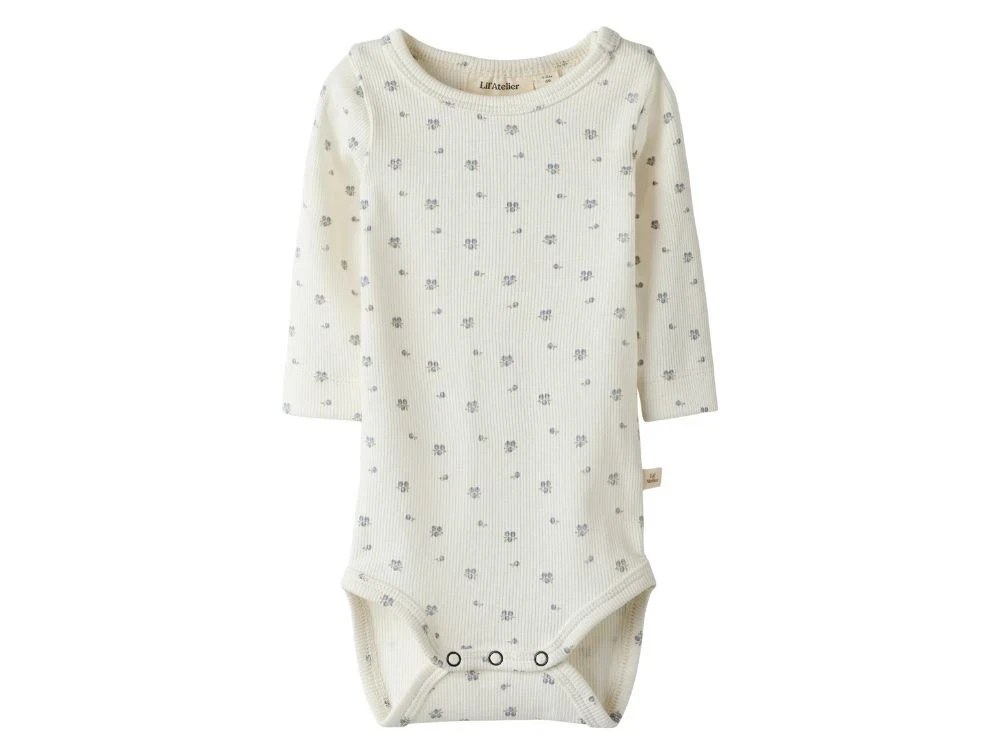 Lil' Atelier body i råhvid med blåbærprint og lange ærmer