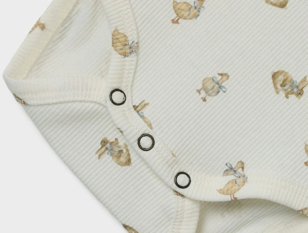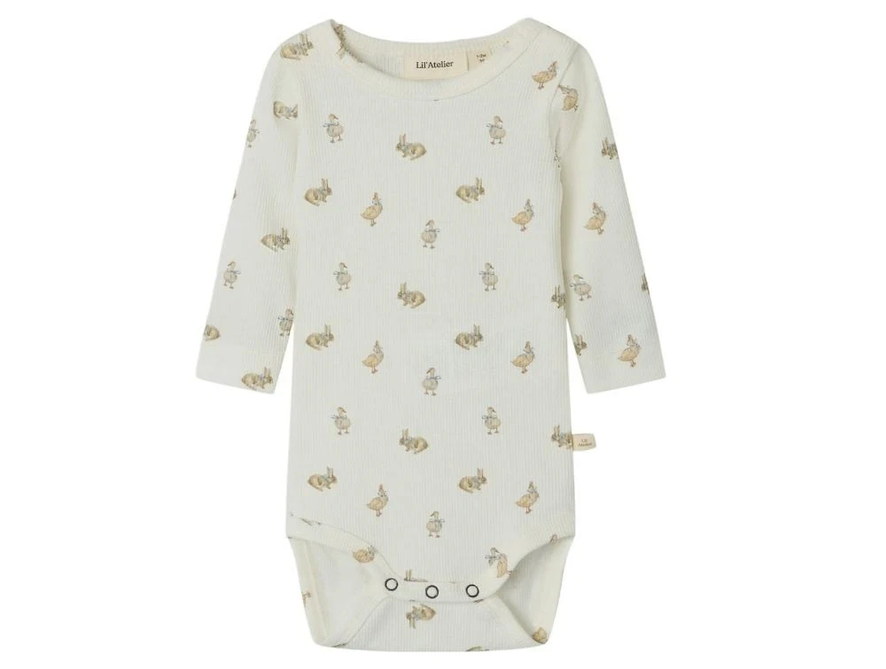 Body i farven coconut milk med print af ænder og harer fra Lil' Atelier.