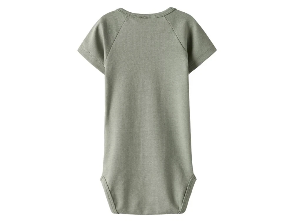 Body i grøn nuance fra Lil' Atelier med korte ærmer og trykknapper.