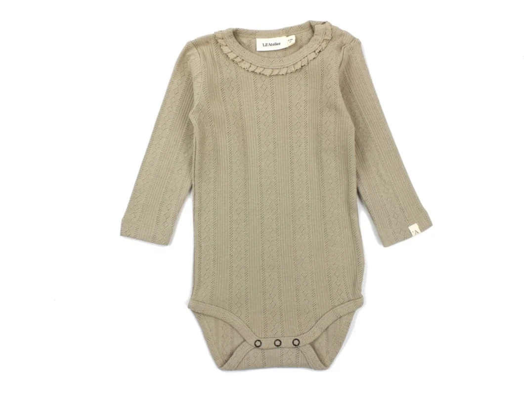 Body med hulmønster og flæsekrave i farven tuffet fra Lil' Atelier.