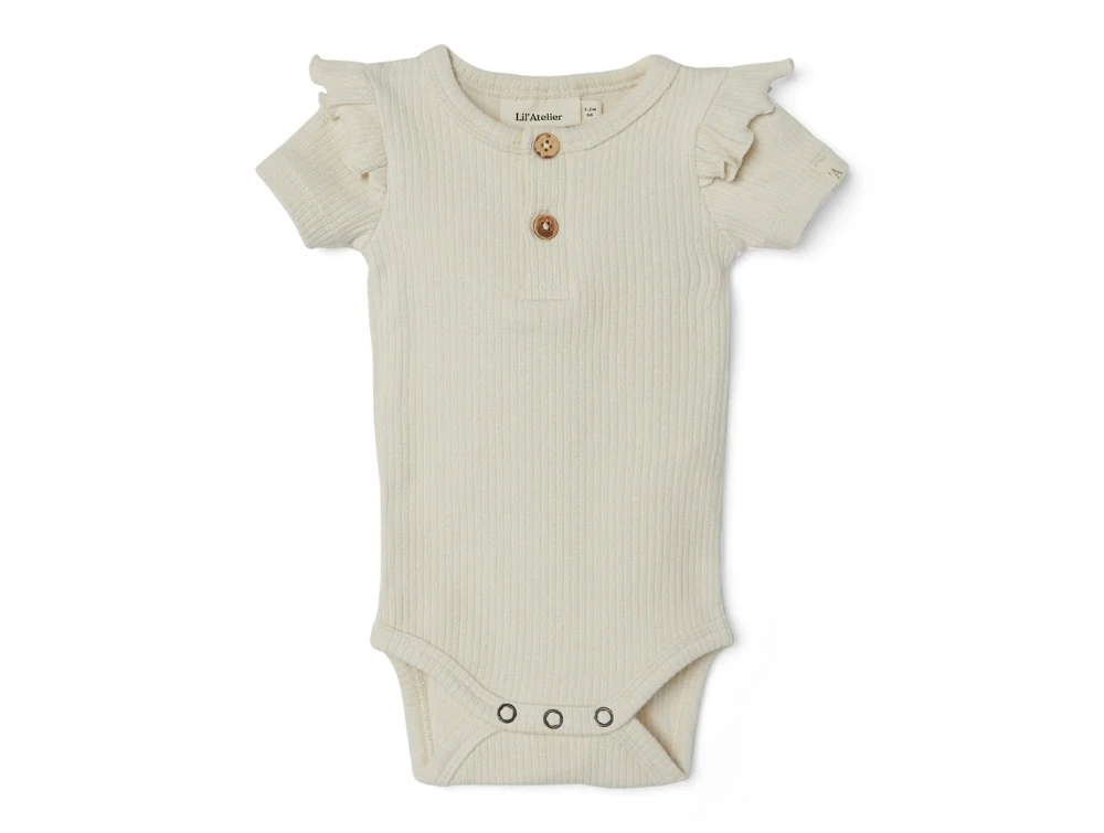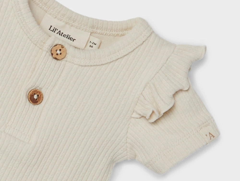 Kortærmet body i rib i farven turtledove fra Lil' Atelier.