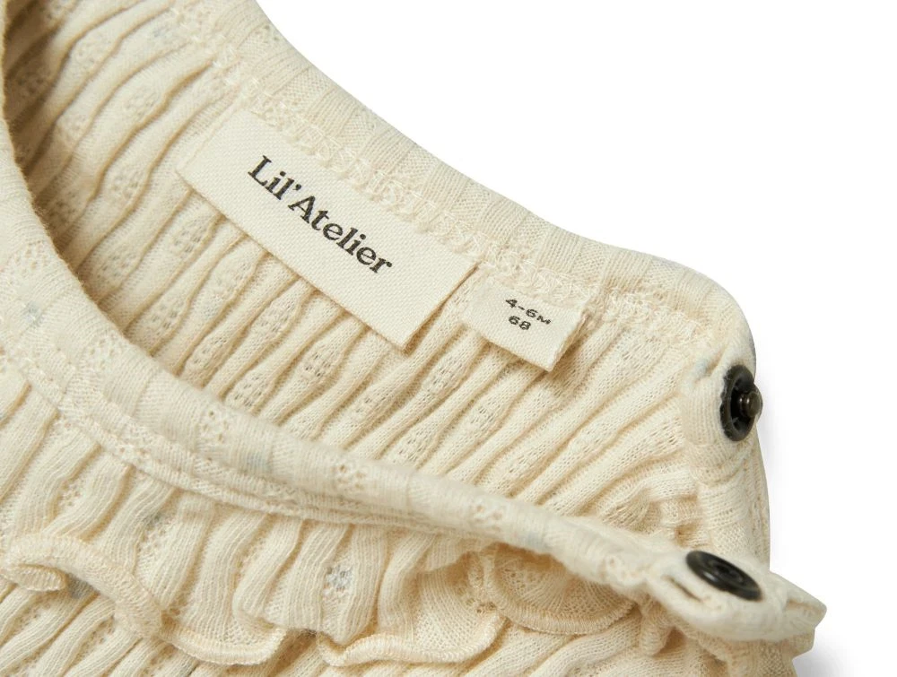 Mere information om Lil' Atelier body turtledove med flæsekant