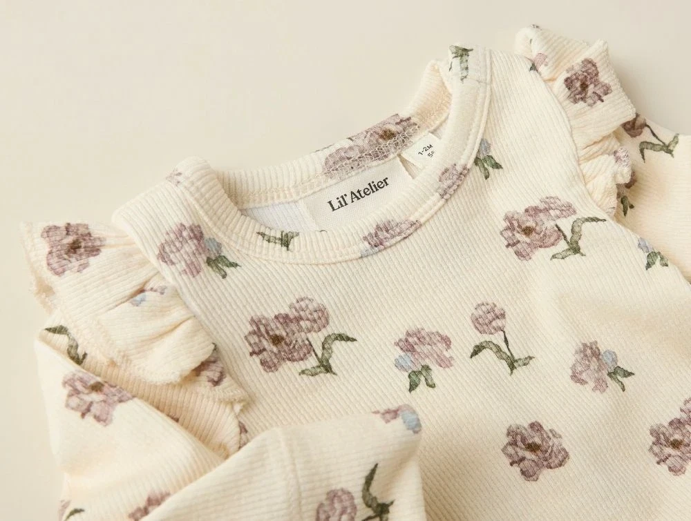 Body i farven turtledove med blomsterprint fra Lil' Atelier.