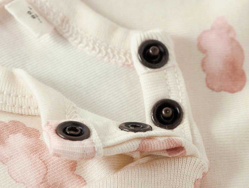 Body i råhvid nuance fra Lil' Atelier med et sødt rosa skyprint. Den bløde jerseykvalitet med stræk sikrer høj komfort og bevægelsesfrihed for baby. Trykknapper på skulderen og mellem benene gør den nem at tage af og på.