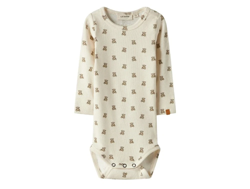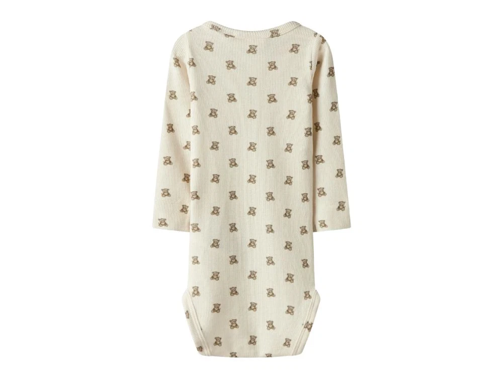 Body i råhvid nuance fra Lil' Atelier med det sødeste bamseprint og klassisk rund halsudskæring.
