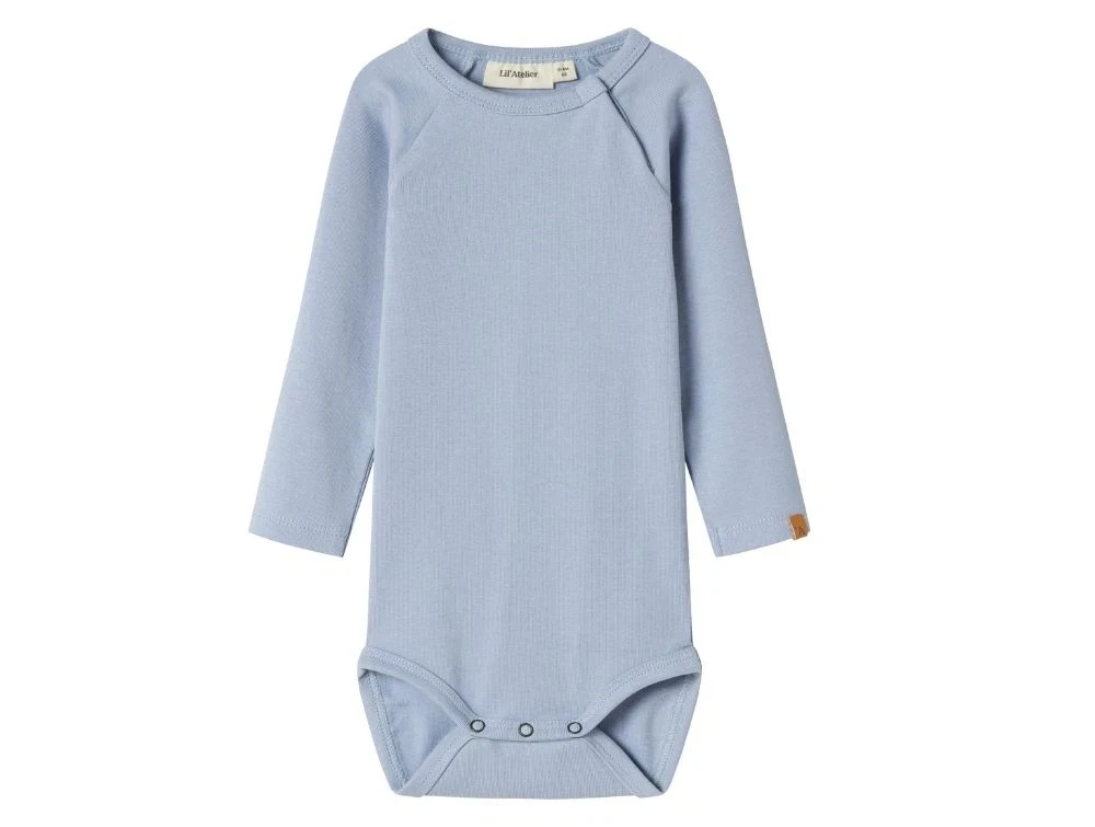 Body i støvet lyseblå nuance (zen blue) fra Lil' Atelier med lange ærmer og rund hals.