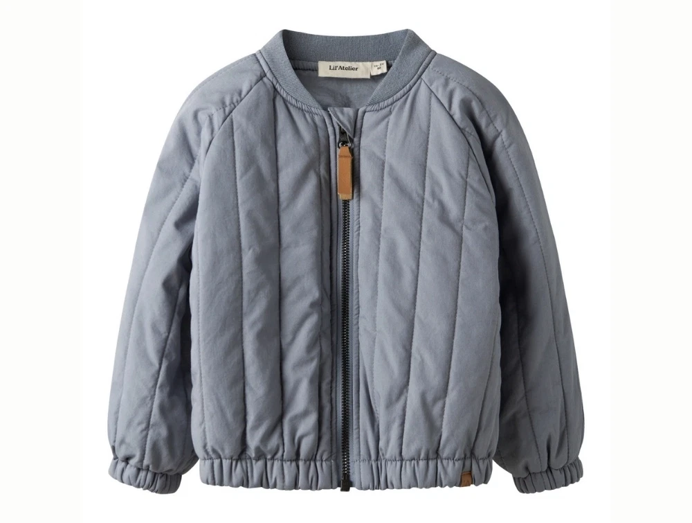Den quiltede kvalitet giver et let og lunt lag i overgangsperioder, mens den afdæmpede blå tone skaber et roligt udtryk. Jakken har almindelig pasform med elastiske afslutninger ved ærmer og bund.