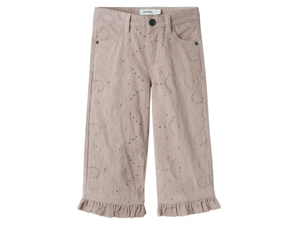 Lil Atelier brede bukser i farven etherea med blomsterbroderi.