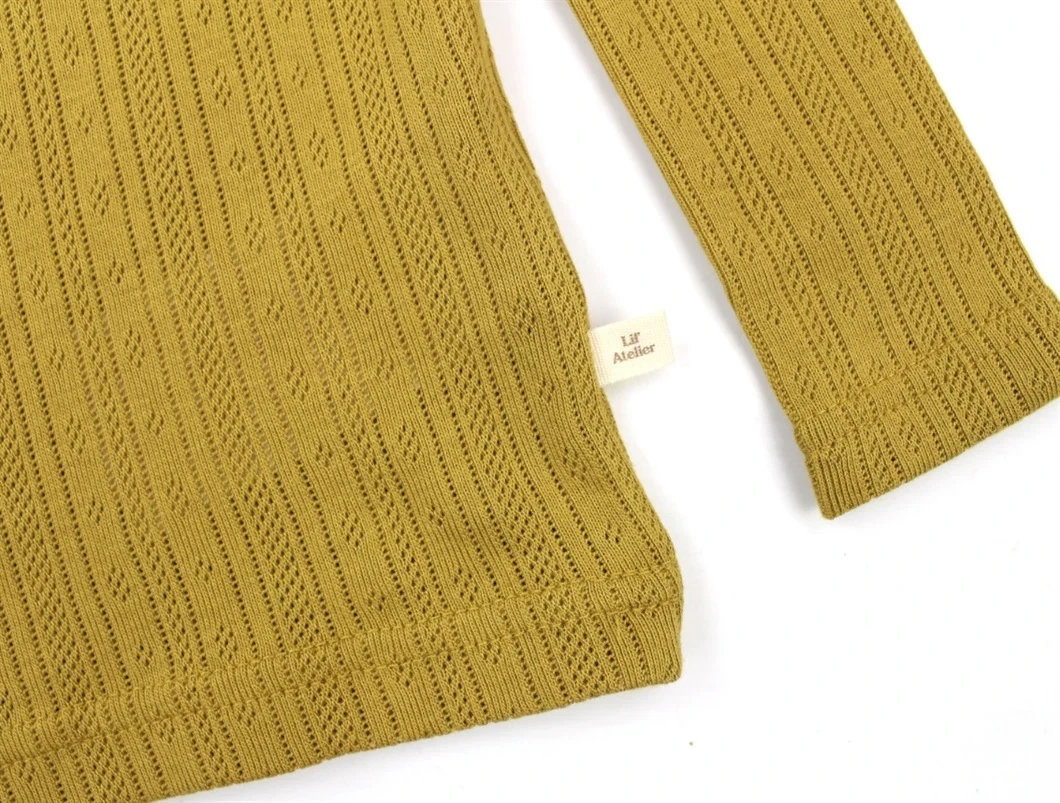 Langærmet top med hulmønster og flæsekrave i farven bronze mist fra Lil' Atelier.