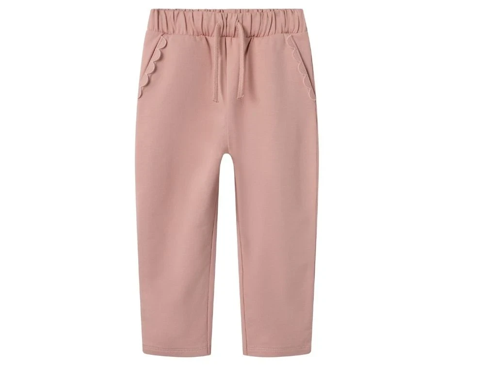Bukser i støvet rosa nuance med fine flæsedetaljer ved lommerne fra Lil' Atelier.