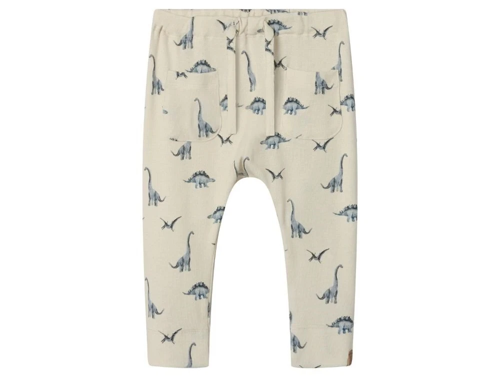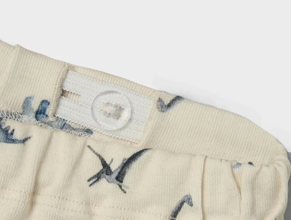 Bukser i råhvid (turtledove) med dinoprint fra Lil' Atelier.