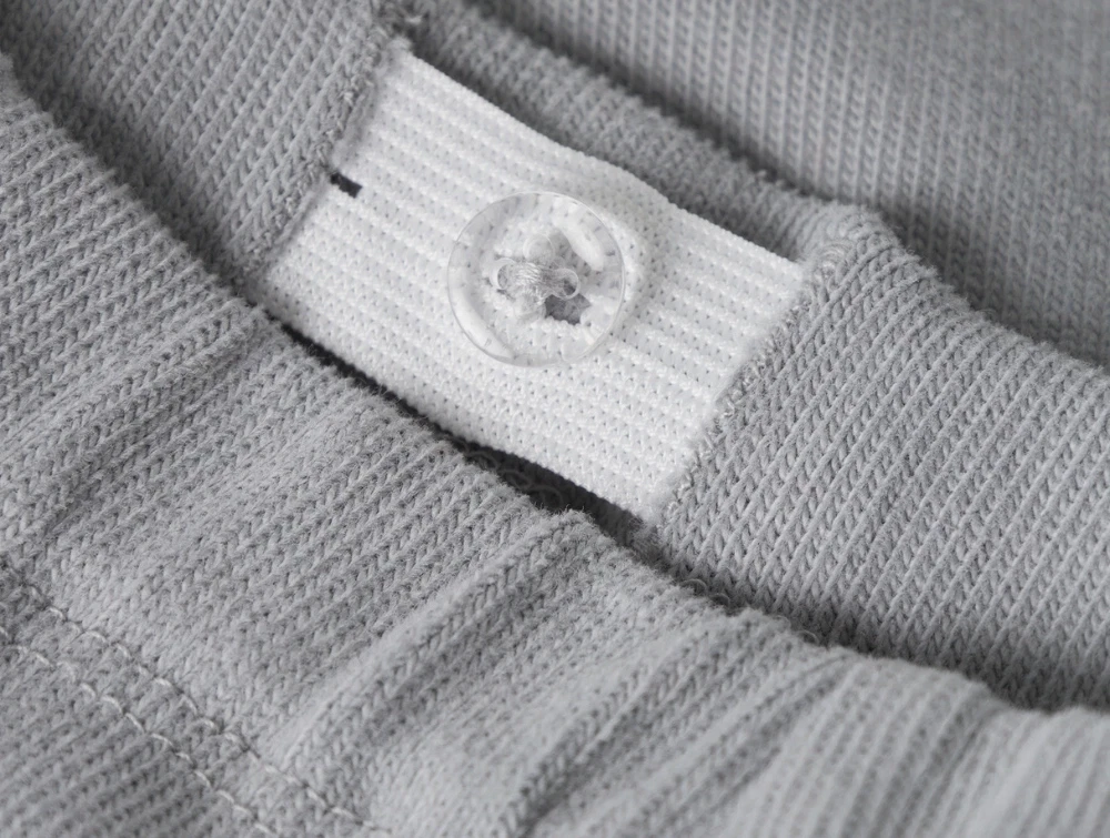 Bukserne er fremstillet i strækbar jersey af økologisk bomuld med lidt elastan for ekstra bevægelighed. Elastikken i taljen kan justeres, så de altid sidder godt på barnet.