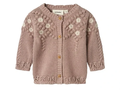 Strikcardigan i farven etherea med blomster fra Lil' Atelier.
