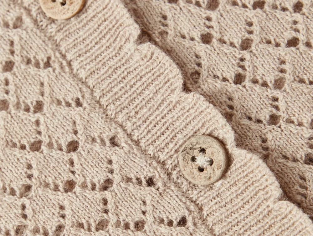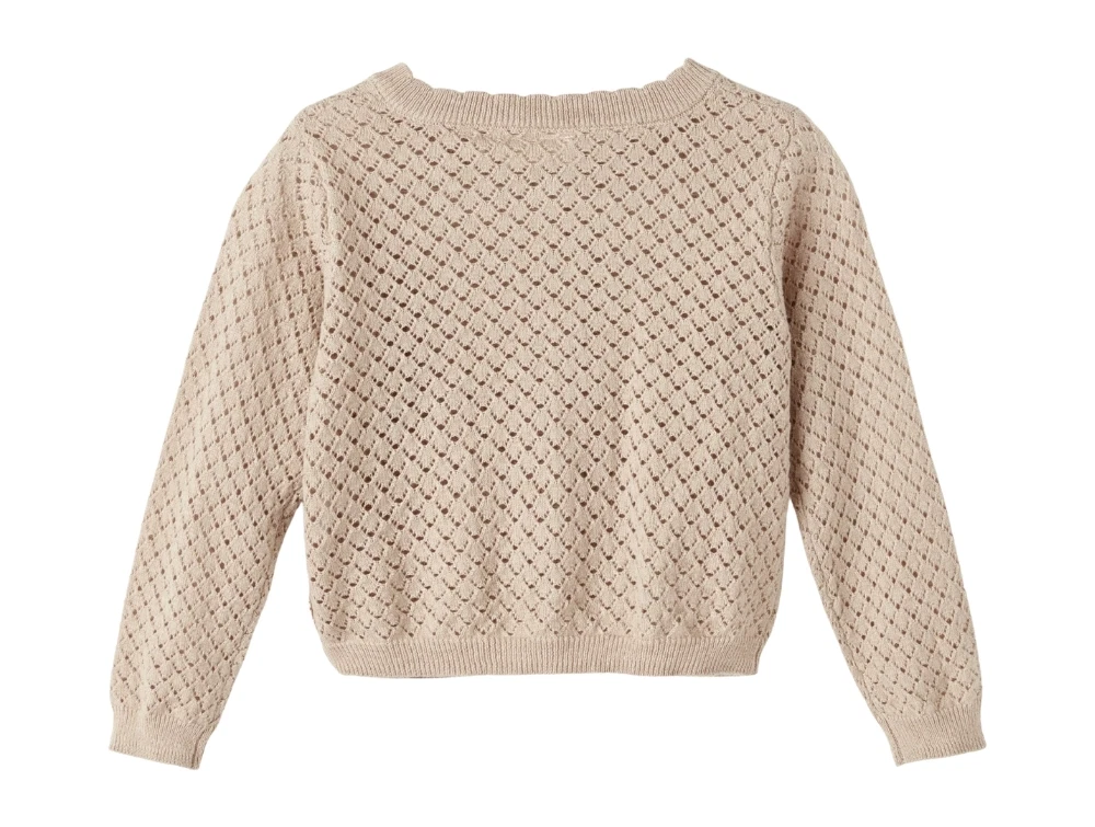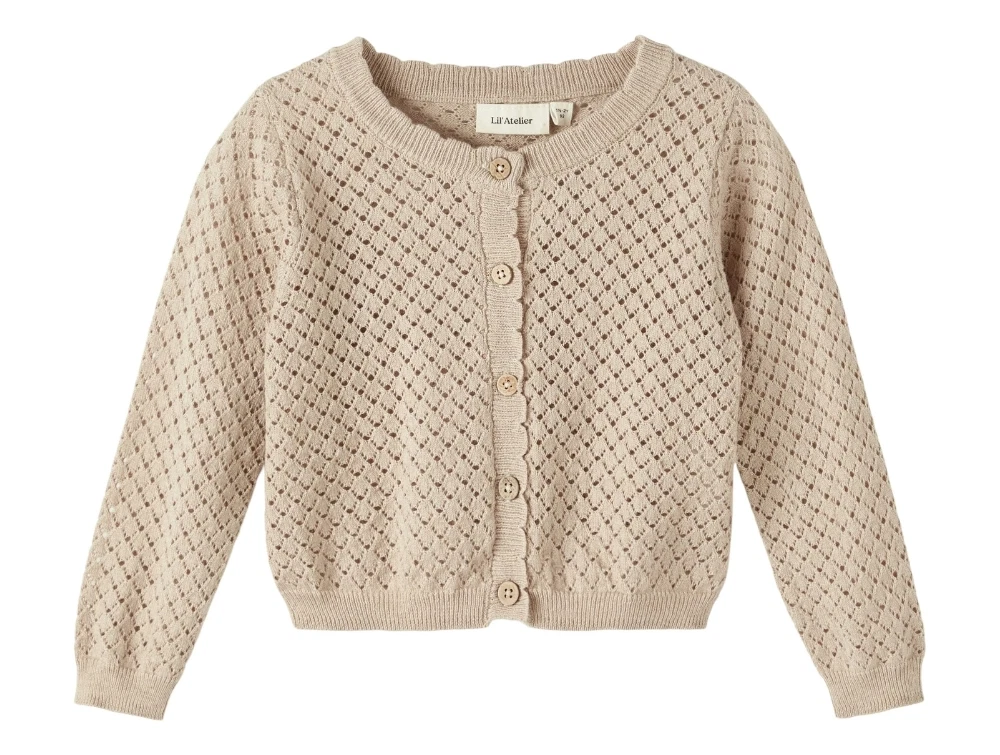 Cardigan med hulmønster i farven humus melange fra Lil' Atelier.