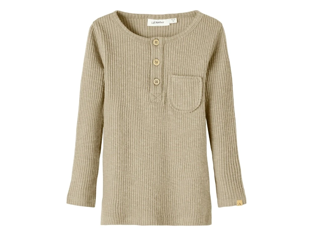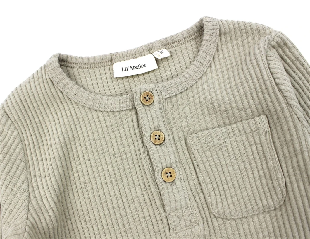 Bluse i bred ribstruktur med knapper og lille lomme i farven chinchilla fra Lil' Atelier.