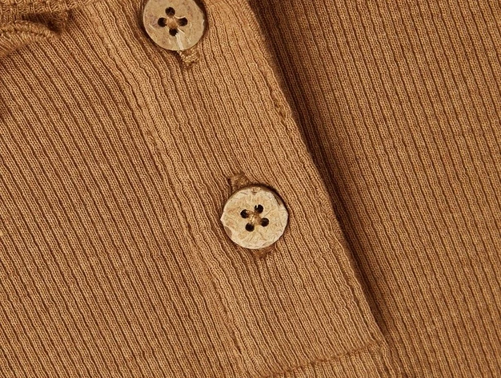 Top i farven chipmunk med flæse og knapper fra Lil' Atelier.