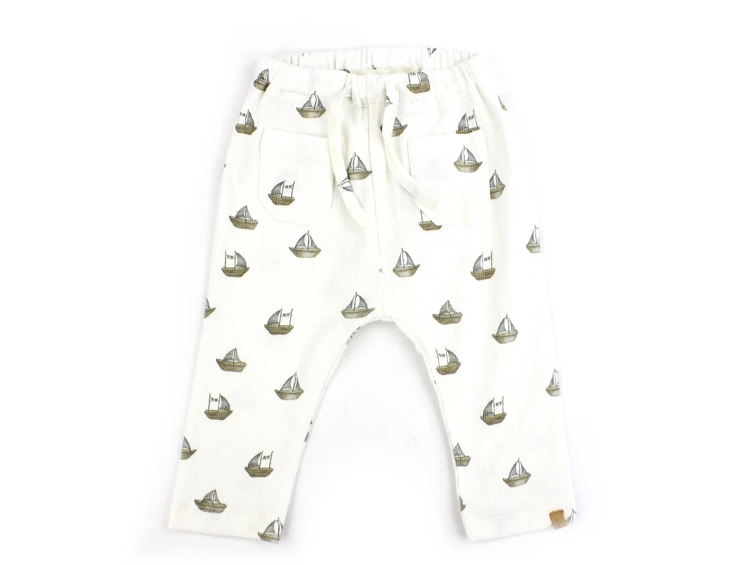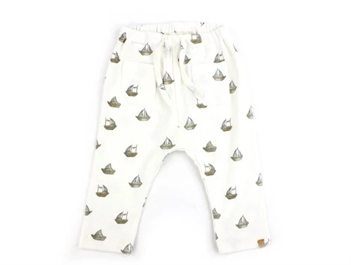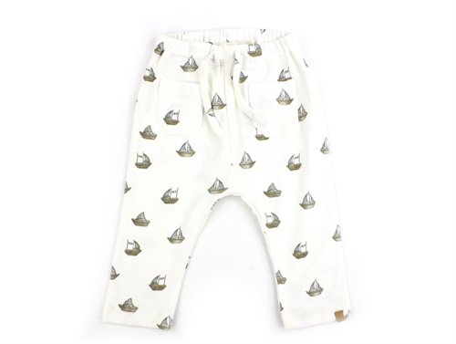 Bukser i farven coconut milk med bådprint fra Lil' Atelier.