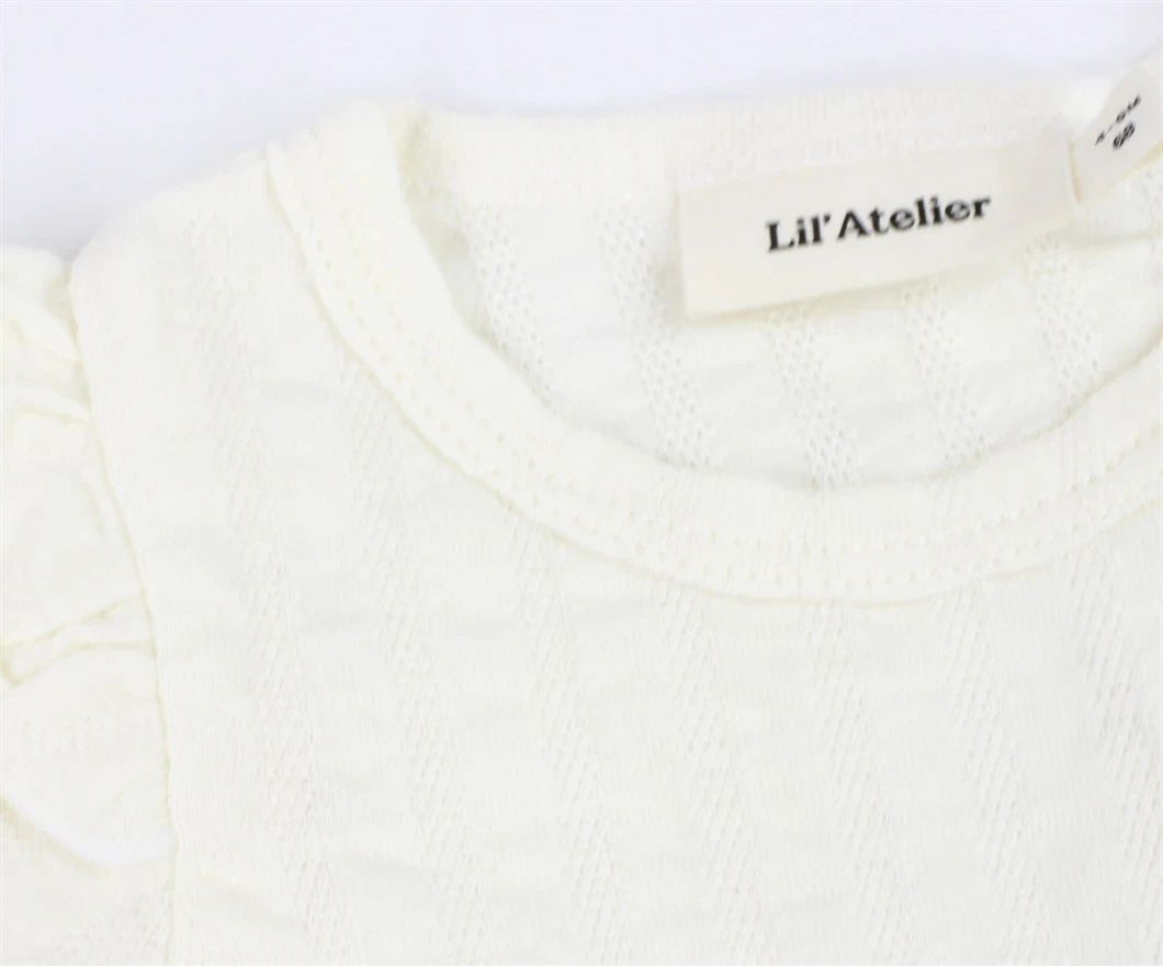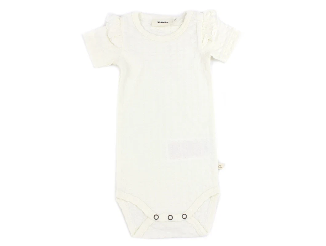Kortærmet body i farven coconut milk med flæser fra Lil' Atelier.