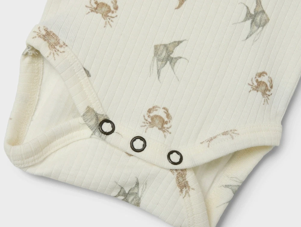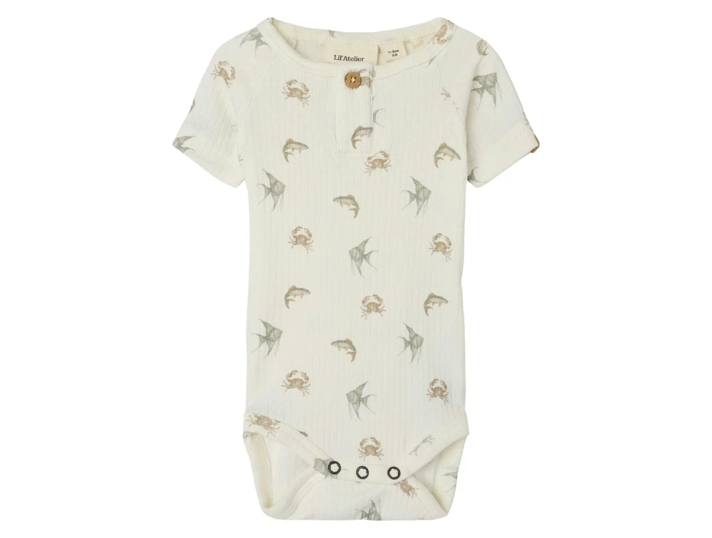Kortærmet body i farven coconut milk med krabbeprint fra Lil' Atelier.