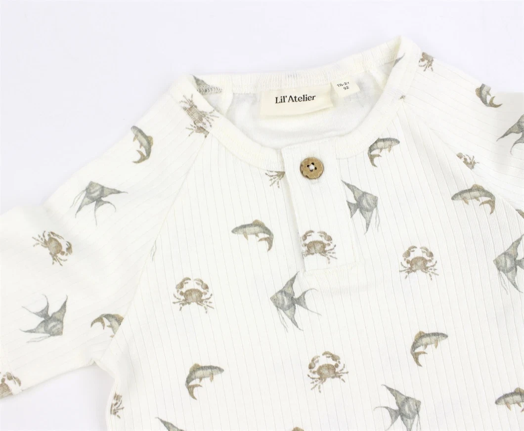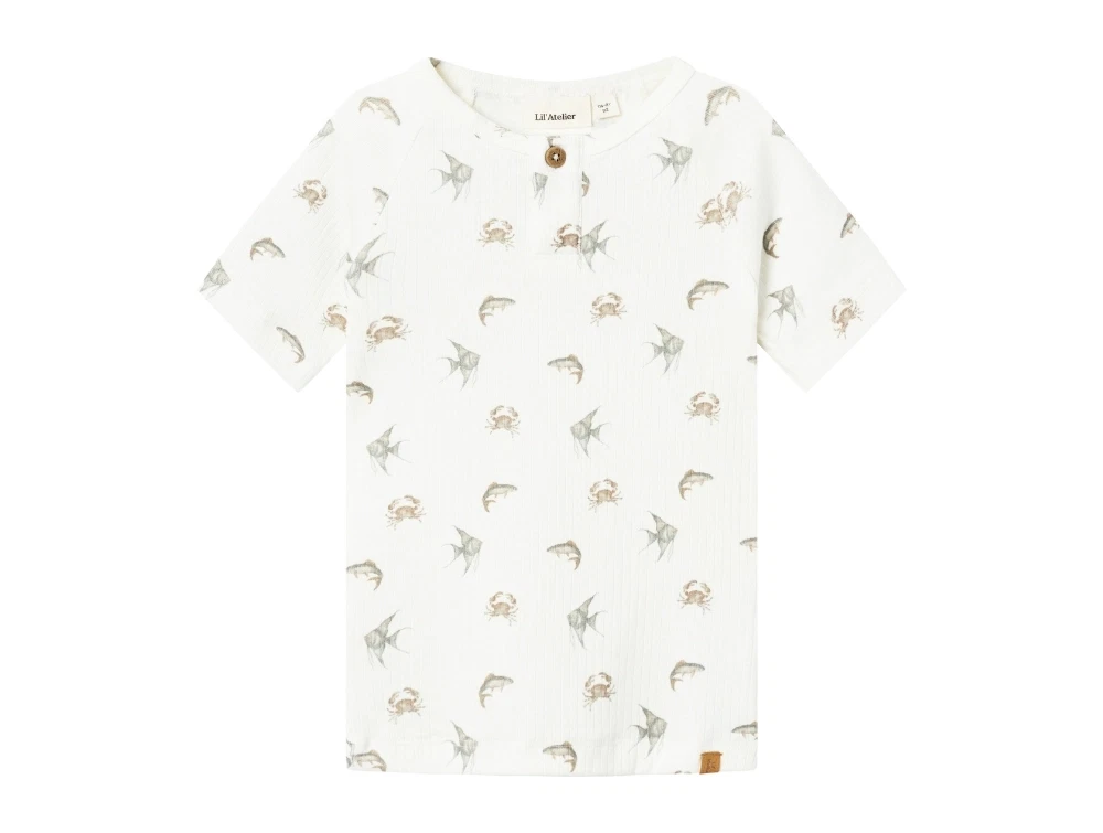 Kortærmet top i farven coconut milk med krabbeprint fra Lil' Atelier.