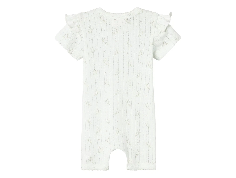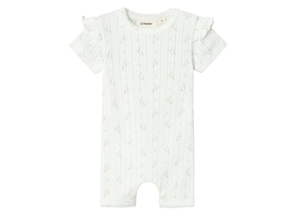 Dragt med korte ærmer og ben i farven coconut milk med print og flæser fra Lil' Atelier.