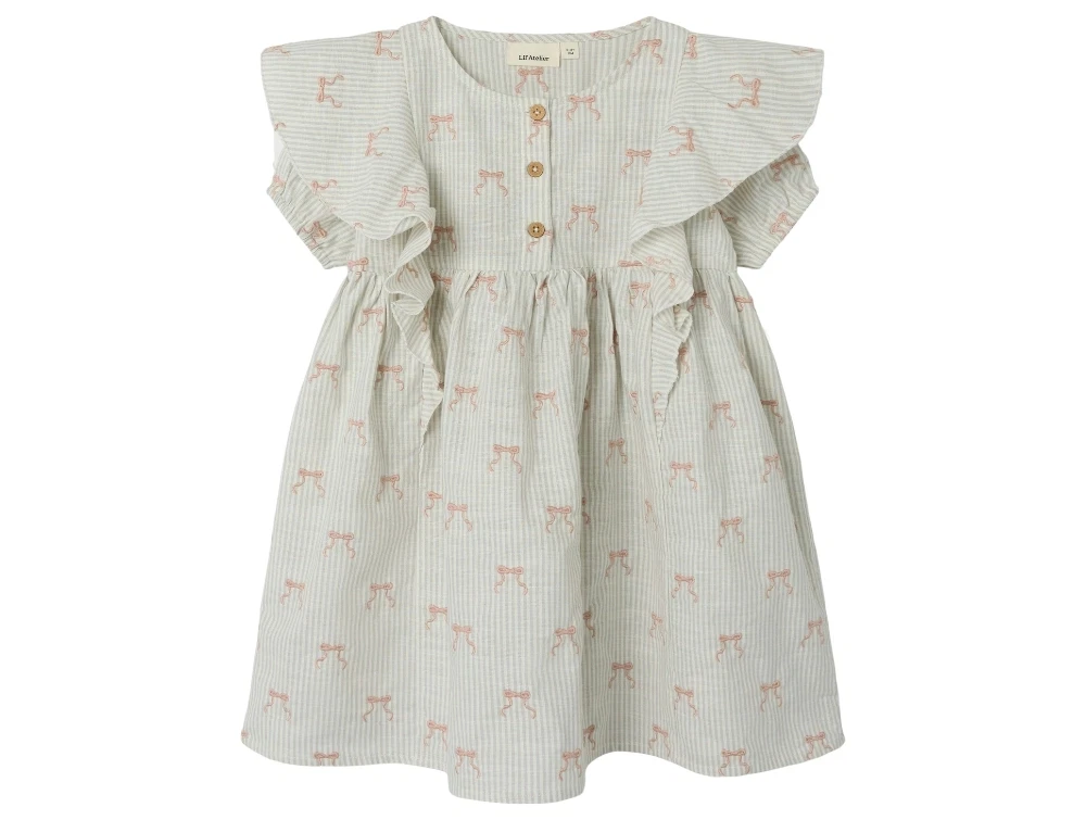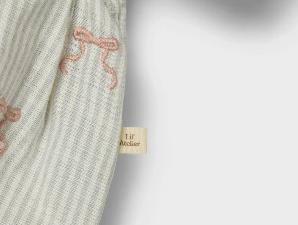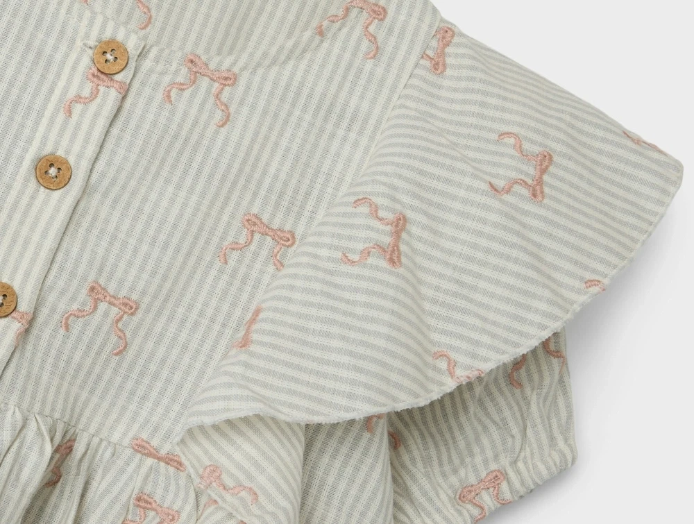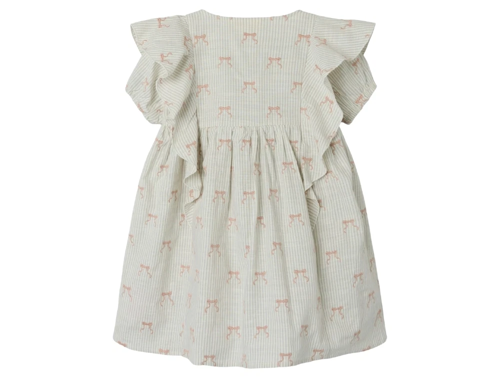 Kjole i farven coconut milk med striber og sløjfebroderi fra Lil' Atelier.