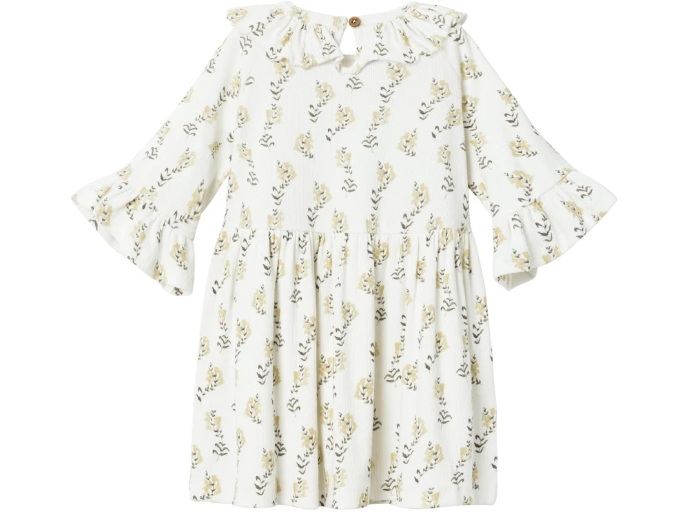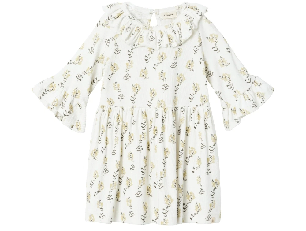 Kjole i farven coconut milk med blomsterprint fra Lil' Atelier.