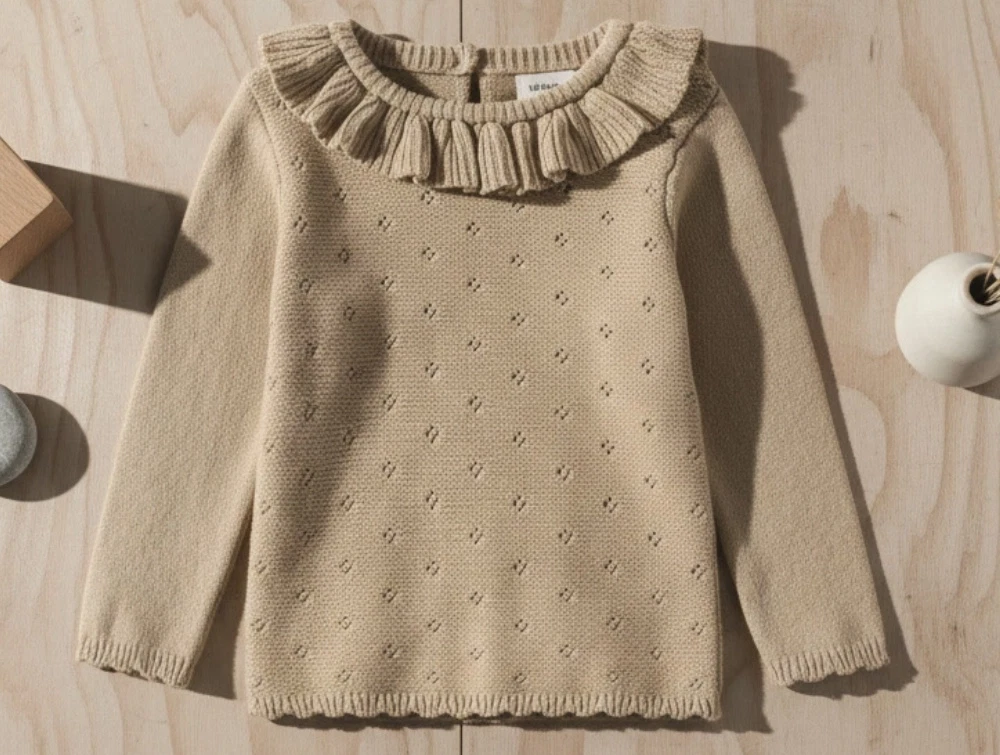 Striktrøje i farven 'curds and whey' fra Lil' Atelier.
