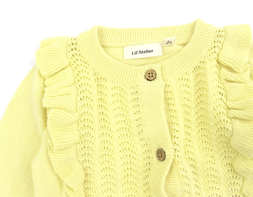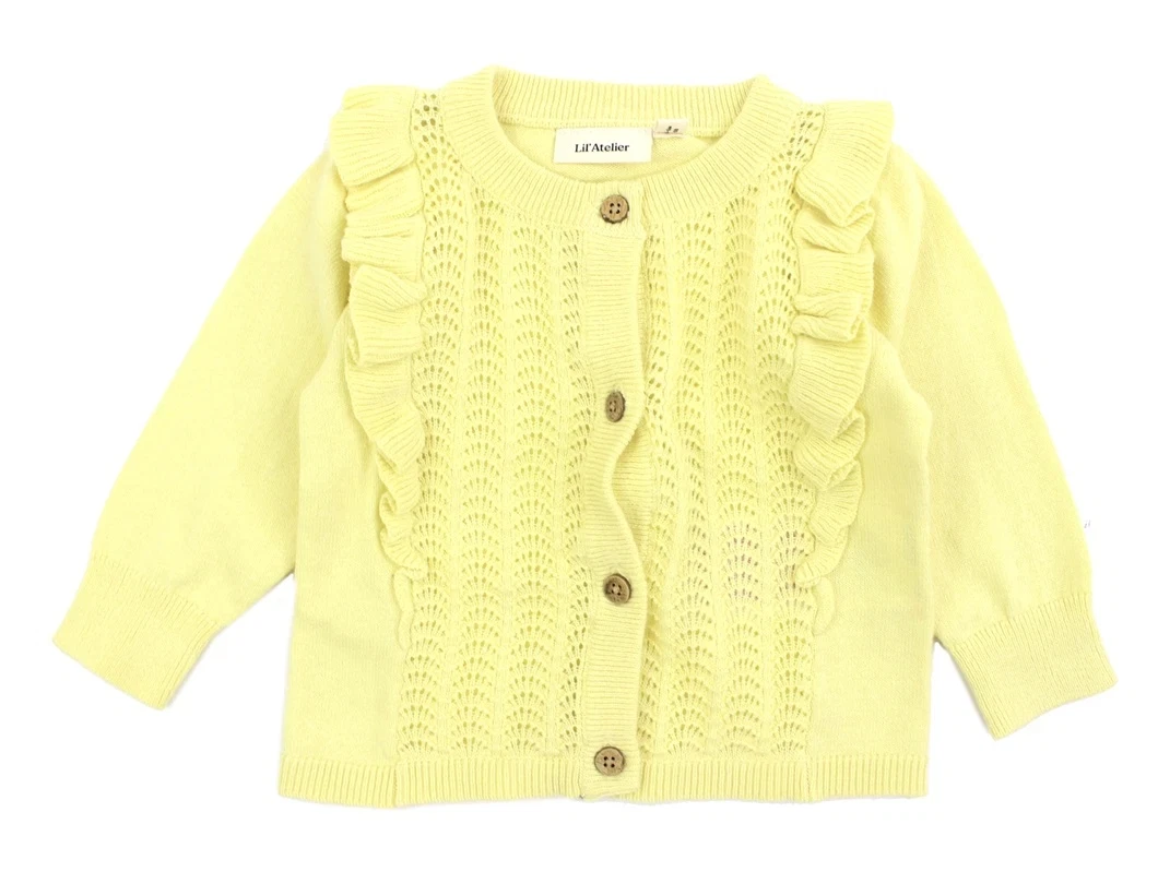 Cardigan i farven double cream med flæser og hulmønster fra Lil' Atelier.