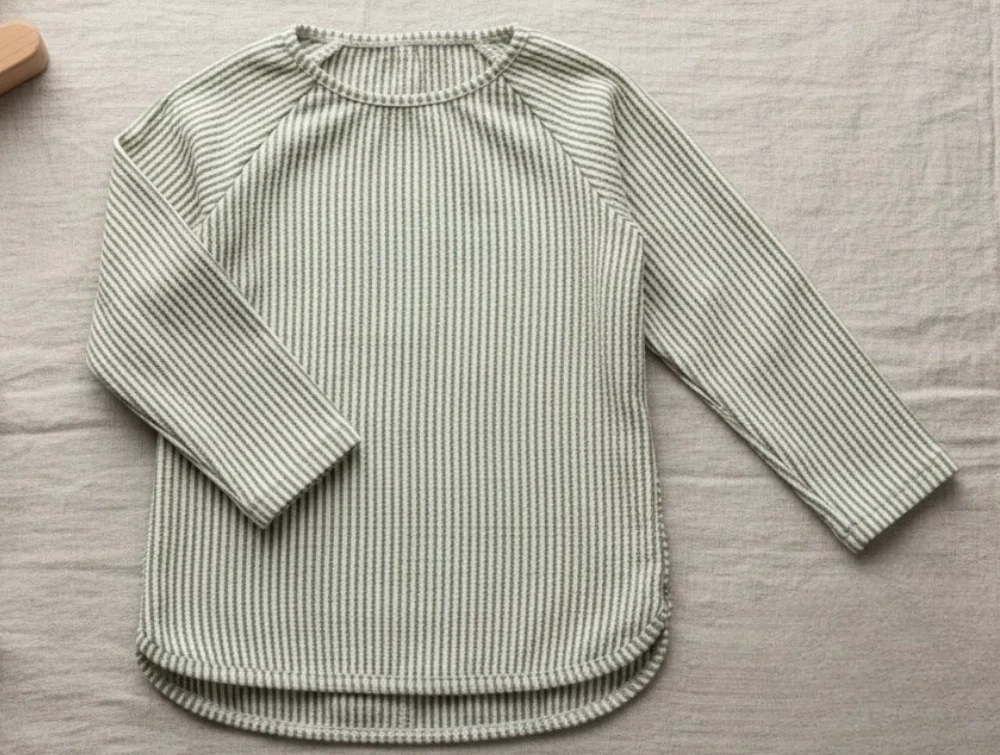 Stribet svømmetrøje i farven dried sage fra Lil' Atelier.