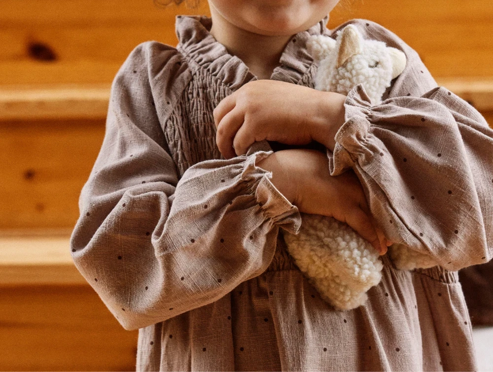 Kjole i farven etherea med prikker fra Lil' Atelier.