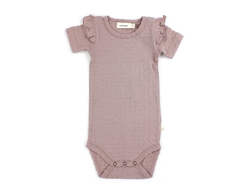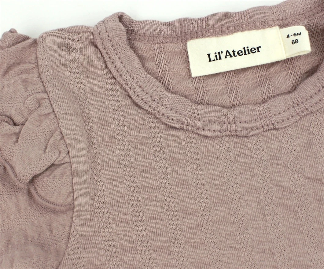 Kortærmet body i farven fawn med flæser fra Lil' Atelier.