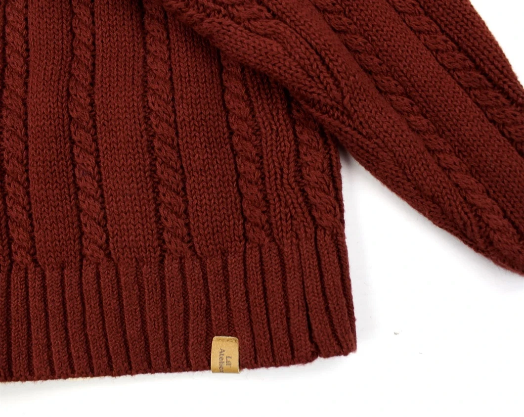 Skøn strikket nissehue i farven red dahlia fra Lil Atelier.