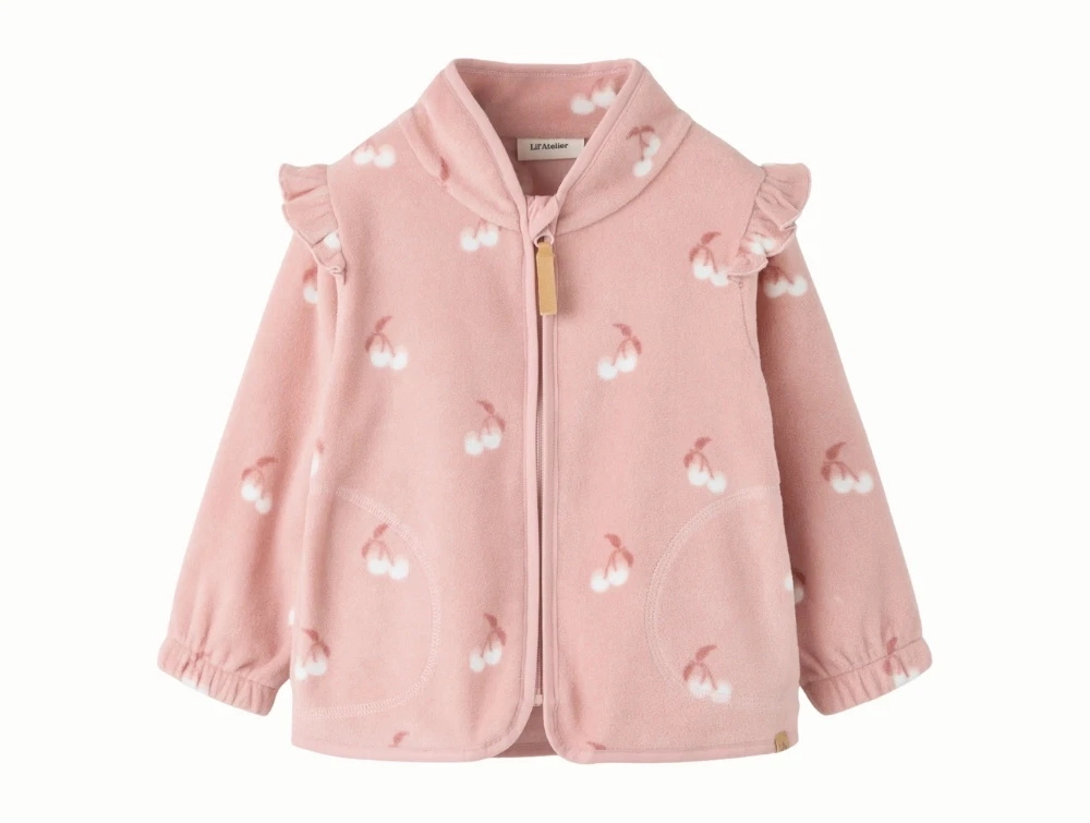 Lil' Atelier fleecejakke misty rose med flæser og kirsebærprint