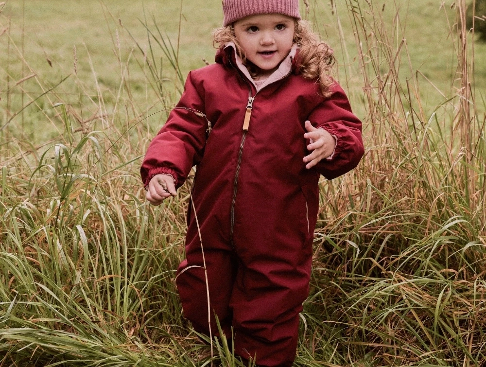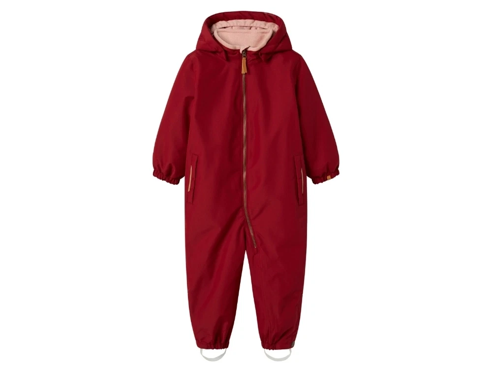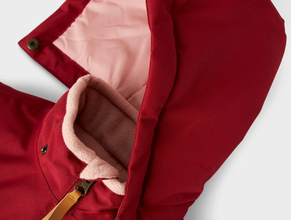 Flyverdragt i rød nuance (red dahlia) fra Lil' Atelier, designet til at give varme og beskyttelse i vinterhalvåret.