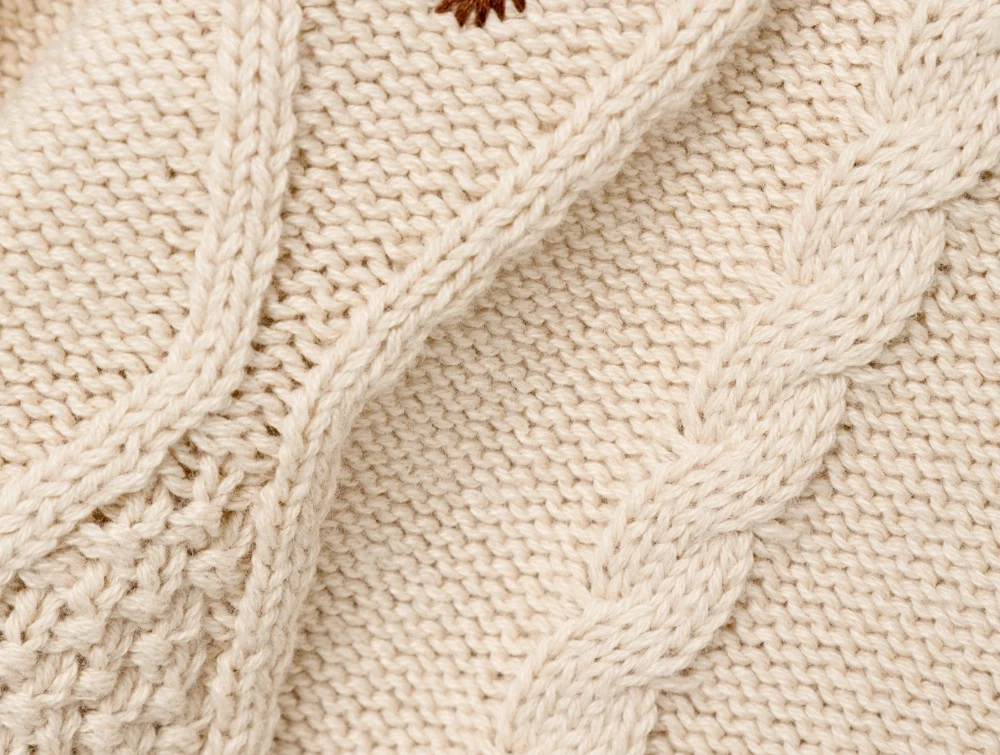 På forsiden har strikken et fint broderi.