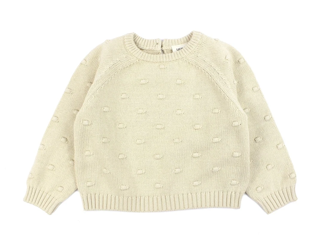 Striktrøje i økologisk bomuldsstrik i farven fog fra Lil' Atelier.