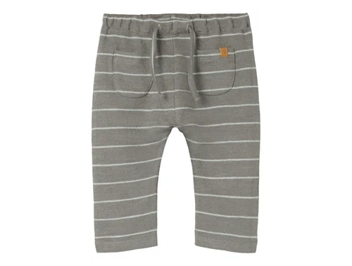 Lil Atelier silent storm stribede bukserGrå buks med smalle hvide striber og bindebånd fra Lil Atelier 13236938 Silent storm