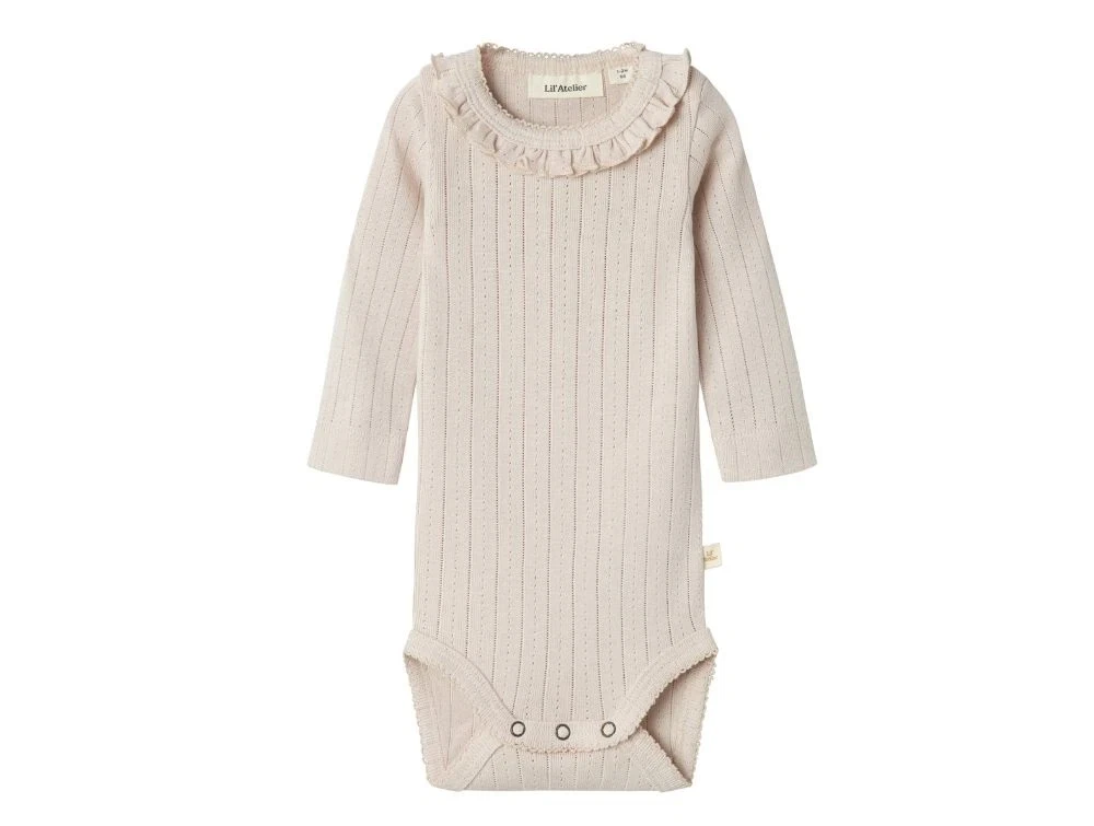 Body med hulmønster og flæsekrave i farven gray morn fra Lil' Atelier.