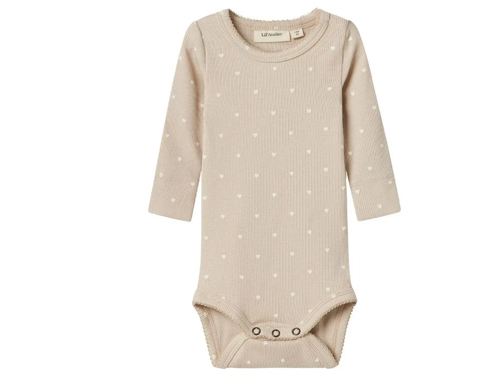 Body i farven gray morn med hjerteprint fra Lil' Atelier.