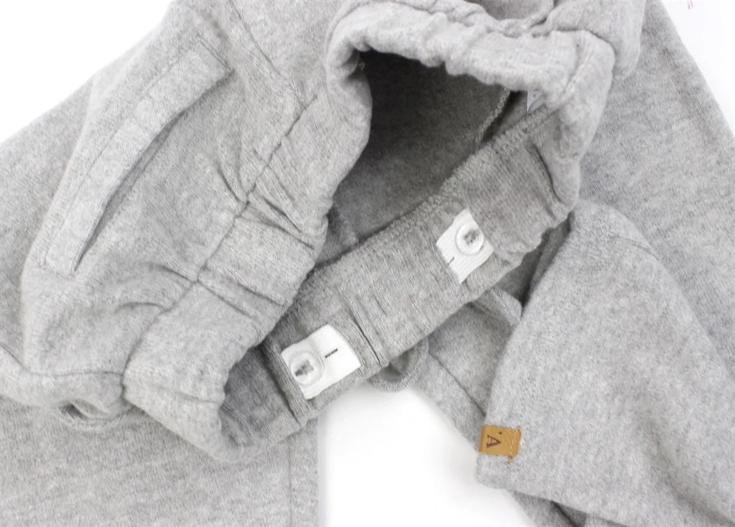 Bukserne er i en relativ tyk kvalitet af økologisk bomuld og har to lommer og justerbar elastik i linningen.