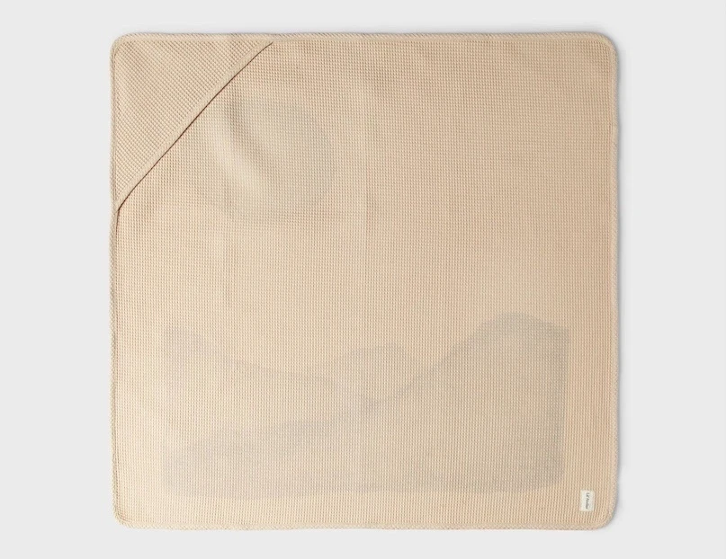 Vaflet badehåndklæde med hætte i økologisk bomuld fra Lil' Atelier i farven croissant.