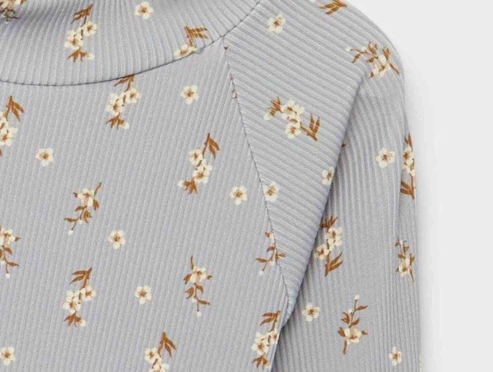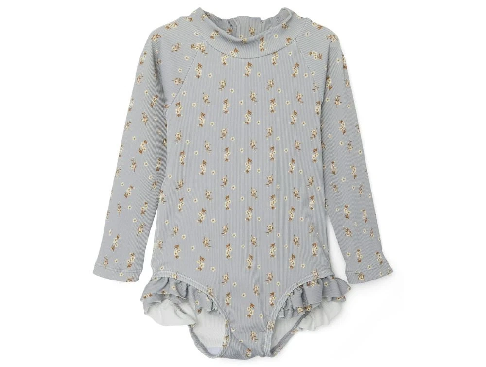 Badedragt i farven harbor mist med blomsterprint fra Lil' Atelier.