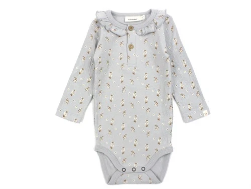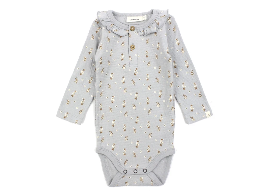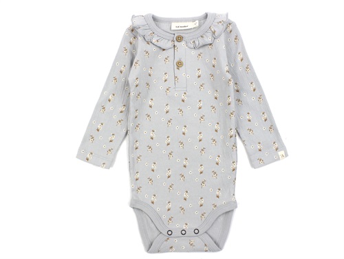 Body i farven harbor mist med blomsterprint, flæse og knapper fra Lil' Atelier.