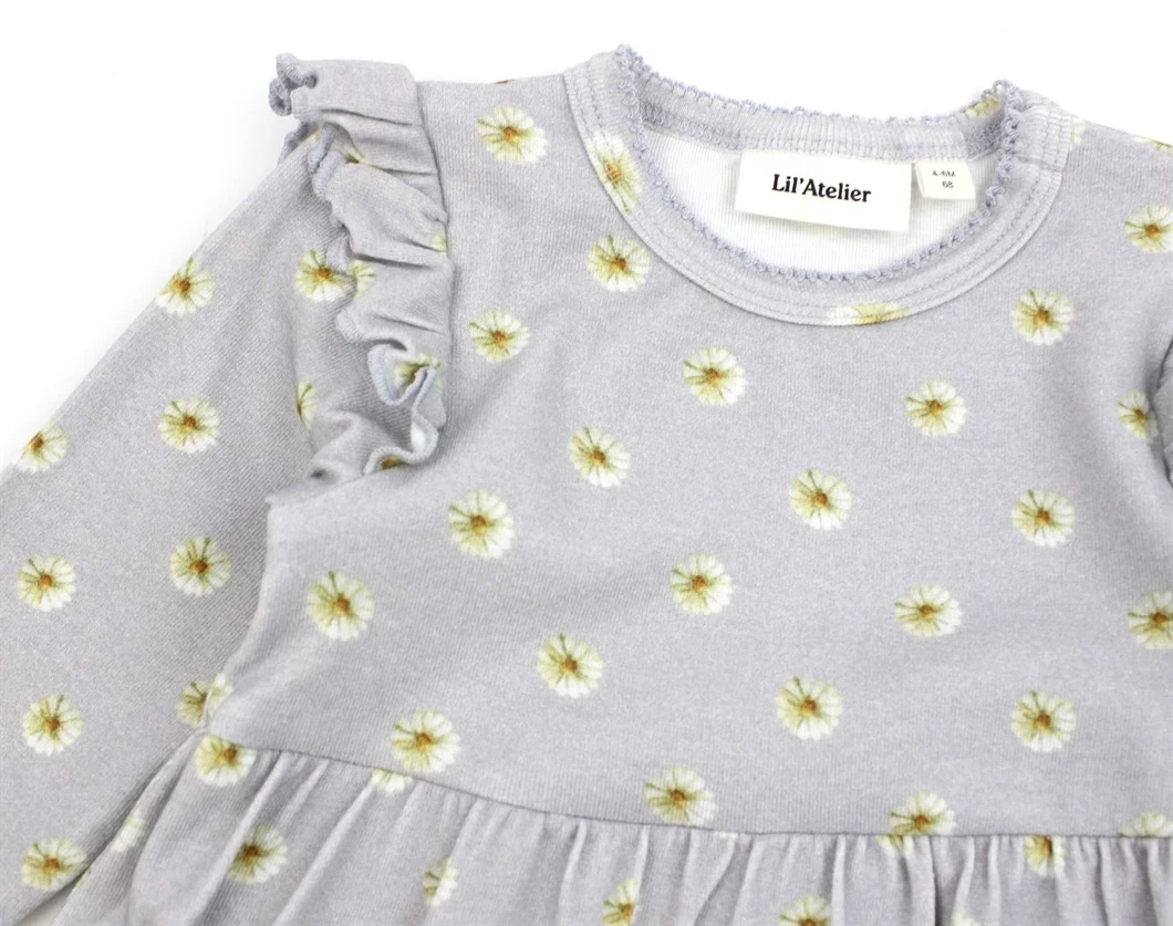 Bodykjole i farven harbor mist med blomsterprint og flæser fra Lil' Atelier.