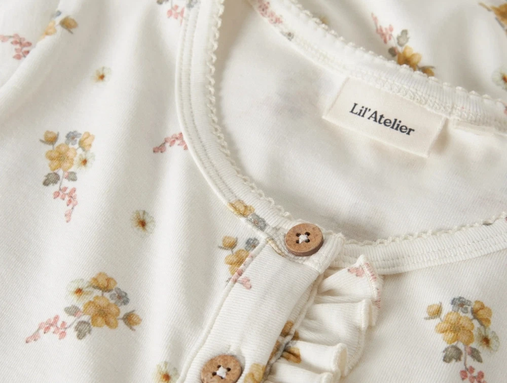 Lil' Atelier kjole coconut milk med blomsterprint og flæser