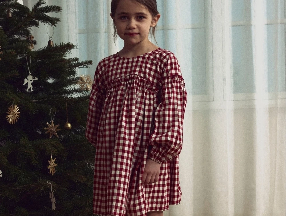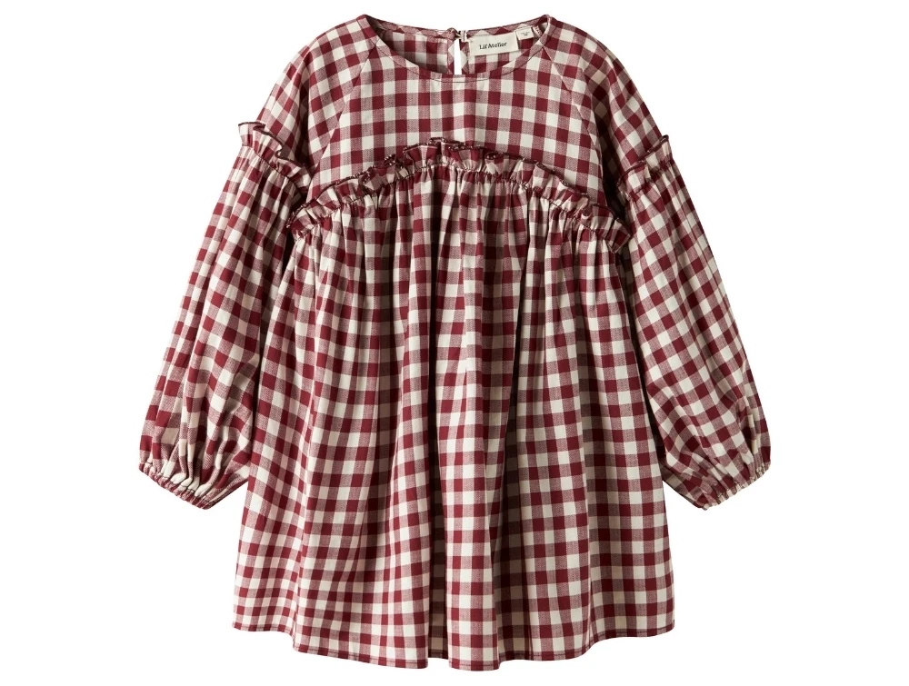 Kjole i rødternet design (red dahlia) fra Lil' Atelier.